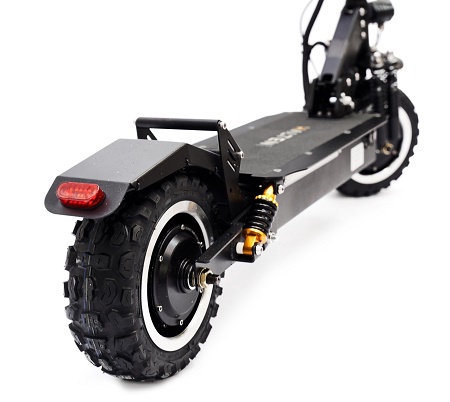 Использовать транспорт в мокрую погоду позволяет новый протектор, который отлично сцепляется с дорожным полотном, а также заводская гидроизоляция и антискользящая дека. Колеса диаметром 11 дюймов оптимальны для городской среды, 2 мотор-колеса мощностью по 1300 Вт помогают как следует разогнаться. Подвеска со стильной красной подсветкой обеспечивает плавное передвижение даже по грунтовым дорогам. Также предусмотрено место для установки сиденья.