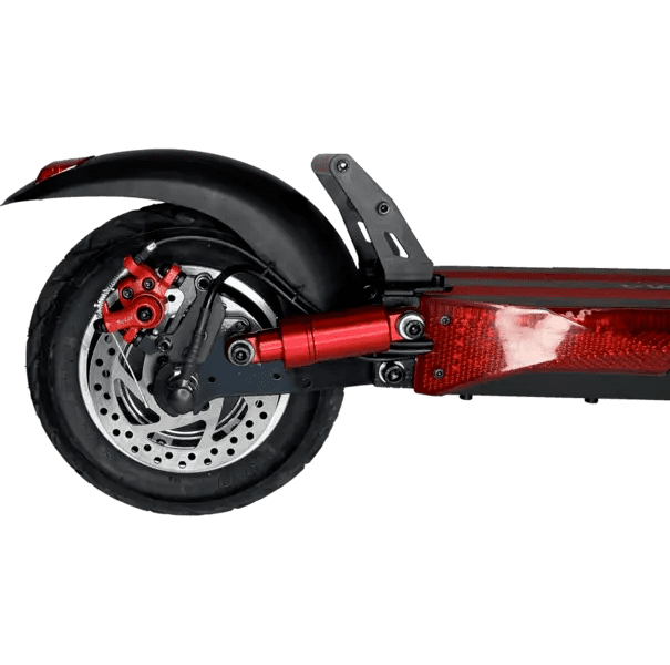 Электросамокат Куго M4 имеет дисковые тормоза на переднем и заднем колесах — такая система торможения позволяет в считанные секунды замедлить ход и полностью остановить устройство. 10-дюймовые надувные колеса оптимальны для городских и парковых дорог с точки зрения проходимости, однако при неправильной эксплуатации существует риск прокола покрышки и камеры.